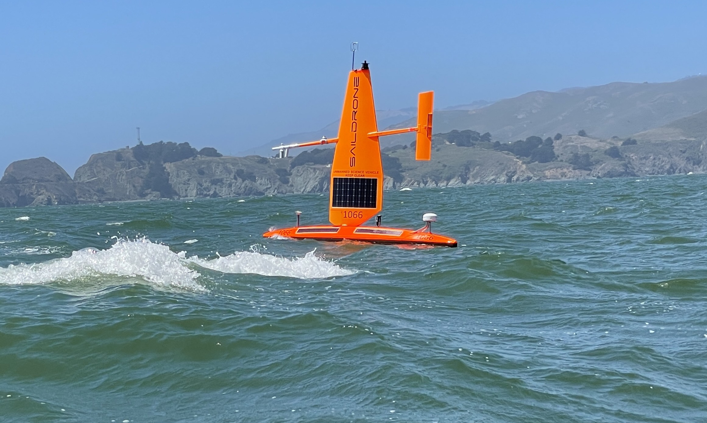 Each USV is outfitted with a suite of sensors to monitor wind stress, air-sea exchanges of heat and carbon dioxide, and surface seawater temperature, salinity, and biogeochemistry. In addition, two of the drones will profile ocean currents to about 100 m depth, while the third will profile the distribution of organisms on a range of trophic levels down to 1,000 m depth.